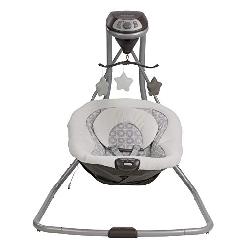 Graco’s Simple Sway proves that great things come in small packages. This smart swing has tons of features to help you soothe and comfort baby, all packed into a compact frame design. It’s easy to keep baby close wherever you are at home Pack and Play You’ll have the option to power up with batteries or save money with the plug-in. The side-to-side swaying motion comforts your little one and 6 swing speeds let you match baby’s mood. A mobile with 3 soft toys, 15 songs and sounds and a 5-point harness to keep baby secure round out the swing’s terrific features. Rotate the speed dial clockwise, and lightly push the swing to get it started. Observe the swinging motion for a minute. It takes time for the swing to adjust to a setting. Change setting if needed by moving the dial clockwise for faster speeds or counter-clockwise for slower.